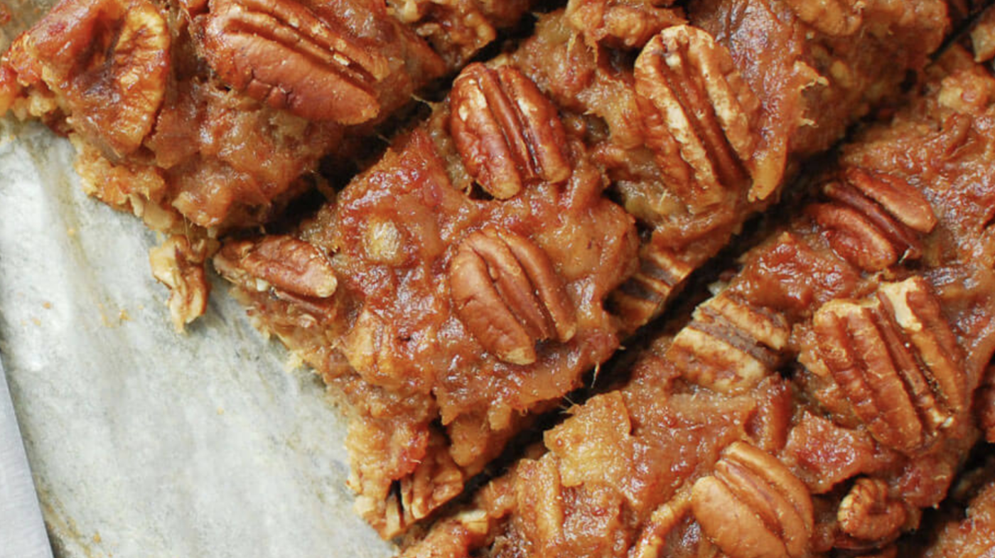You can have your cake and eat it too! Make these paleo pecan squares free of gluten, grains, dairy, refined sugar, and corn syrup. In place of those ingredients, use dates, coconut flakes, water, pecans, and cashews.